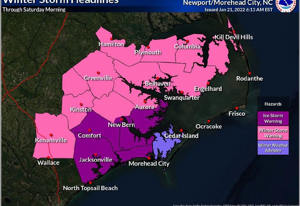 Significant ice amounts are expected between Thursday and Saturday in eastern North Carolina that could cause power outages and make traveling dangerous to nearly impossible.