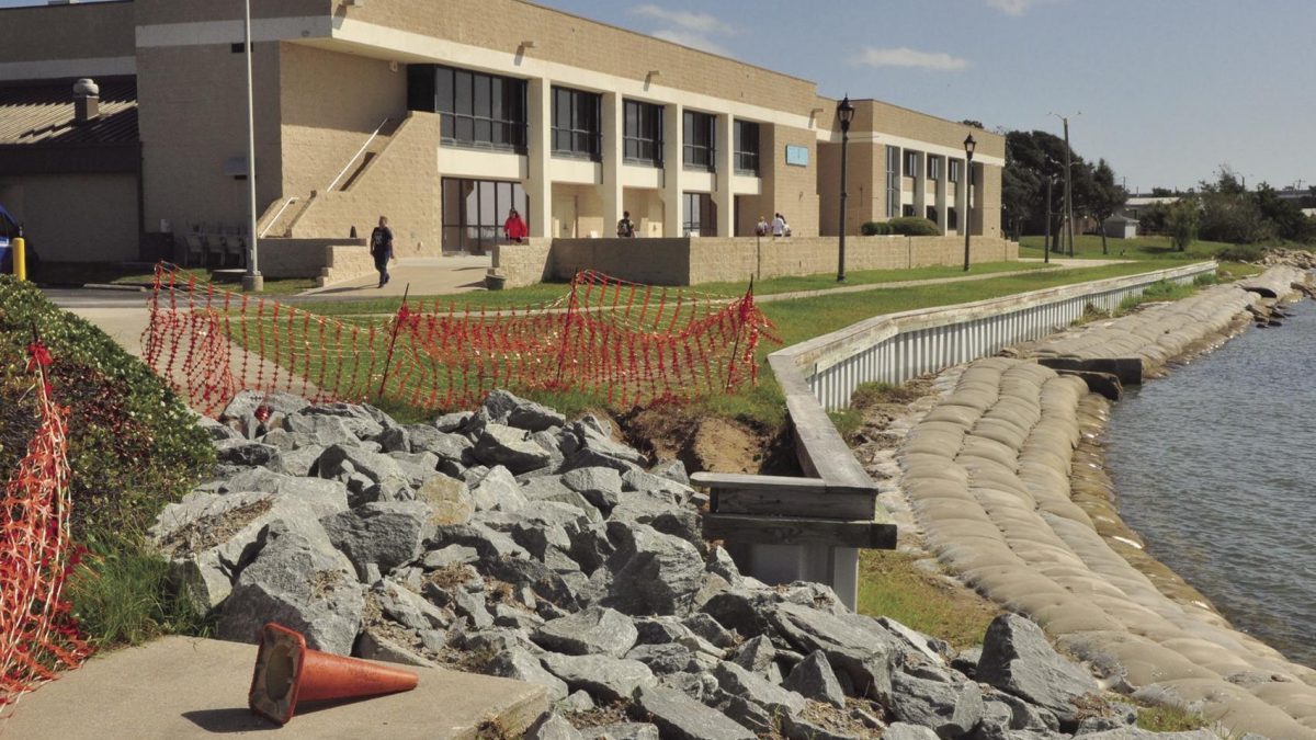 Carteret Community College received a Golden Leaf Foundation hurricane recovery grant for shoreline repair and will work with the North Carolina Coastal Federation on plans for a living shoreline.