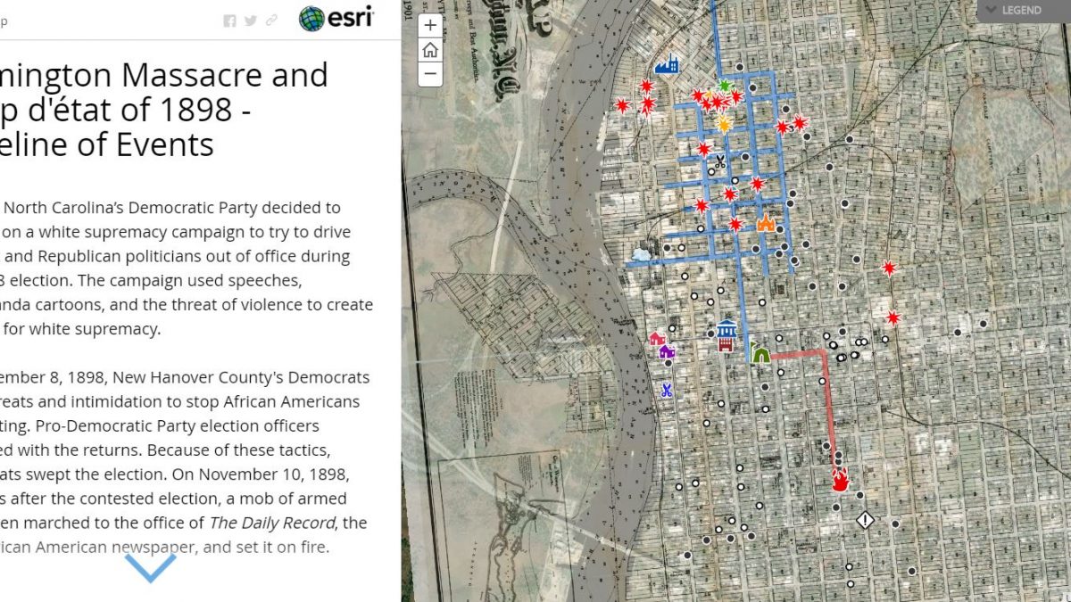 New Hanover County’s Cape Fear Museum of History and Science, Public Library and Information Technology Department worked together to create a map and timeline documenting the Wilmington Massacre and Coup d’état of 1898.